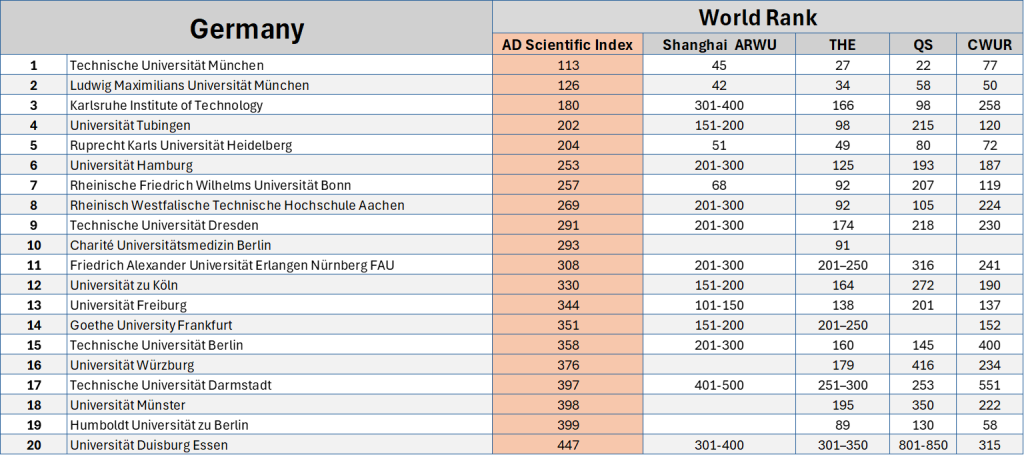 🇩🇪 Die Deutsche Hochschullandschaft im Fokus des AD Scientific Index