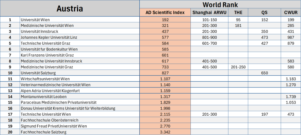 🇦🇹 Die Österreichische Hochschullandschaft im Fokus des AD Scientific Index