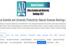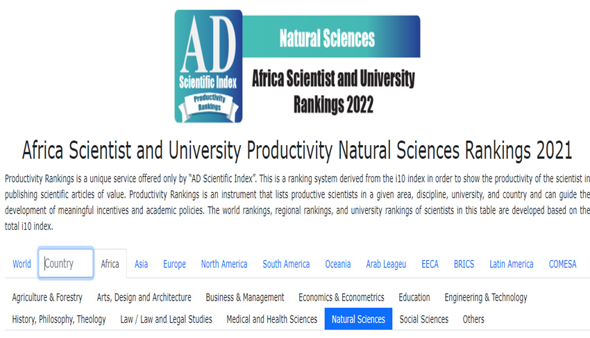 Africa Scientist and University Productivity Natural Sciences Rankings 2021
