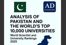 HomeAsiaAnalysis of Pakistan and the World’s Top 10,000 Universities AsiaWorld Analysis of Pakistan and the World’s Top 10,000 Universities By admin 29/05/2025 0 265 Share FacebookTwitterWhatsAppLinkedin PakistanDownload Post Views: 289 Share FacebookTwitterWhatsAppLinkedin Previous articleروا ناتسکاپ 10,000 ہNext articleAnálisis de Panama y de las 10.000 Mejores Universidades del Mundo adminhttp://www.scientistranking.com RELATED ARTICLES Asia Analysis of India and the World’s Top 10,000 Universities 05/06/2025 Central America Análisis de Honduras y de las 10.000 Mejores Universidades del Mundo 05/06/2025 Central America Análisis de Guatemala y de las 10.000 Mejores Universidades del Mundo 05/06/2025 LEAVE A REPLY Cancel reply Comment: Please enter your comment! Name:* Please enter your name here Email:* You have entered an incorrect email address! Please enter your email address here Website: Save my name, email, and website in this browser for the next time I comment. Most Popular AD Scientific Index: Eine Neue Perspektive auf Universitätsrankings in Deutschland und Weltweit 06/11/2025 AD Scientific Index: Eine Neue Perspektive auf Universitätsrankings in Deutschland und Weltweit 06/11/2025 🌟 AD Scientific Index: Új Nézőpont az Egyetemi Ranglistákban Magyarországon és Világszerte 06/11/2025 🌟 AD Scientific Index: Nova Perspektiva Sveučilišnih Rangova u Hrvatskoj i Širom Svijeta 06/11/2025 Load more Recent Comments