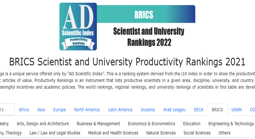 # AD Scientific Index – Scientist Productivity Rankings – 2021
