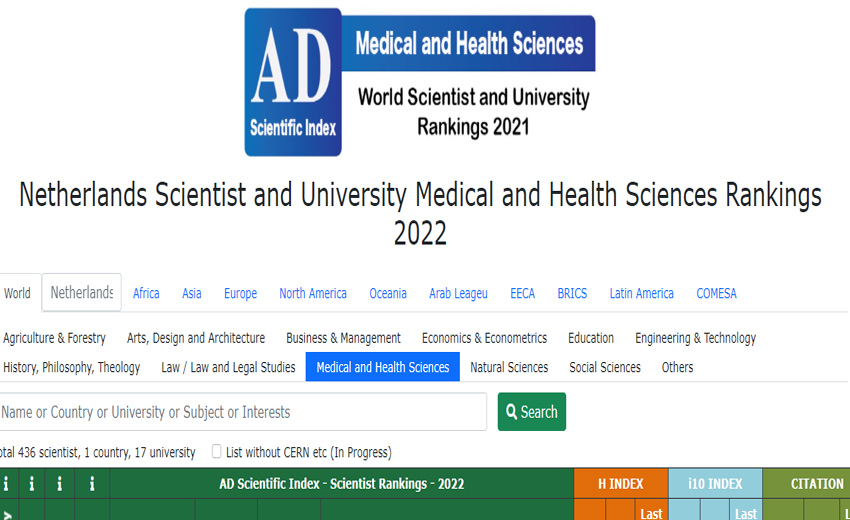 HomeWorldNetherlands Scientist and University Medical and Health Sciences Rankings 2022